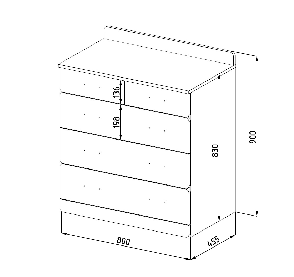 Габариты: ширина 804 х глубина 480 х высота 900 мм