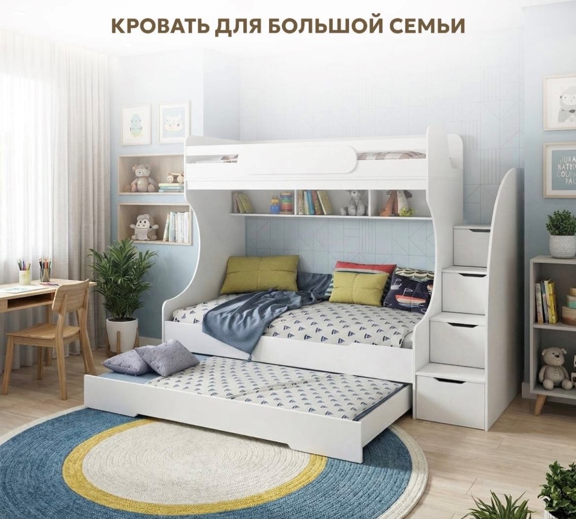 Просторная, прочная и безопасная кровать БИГ с дополнительным спальным местом