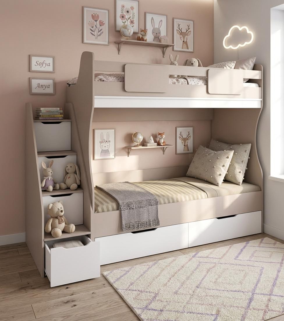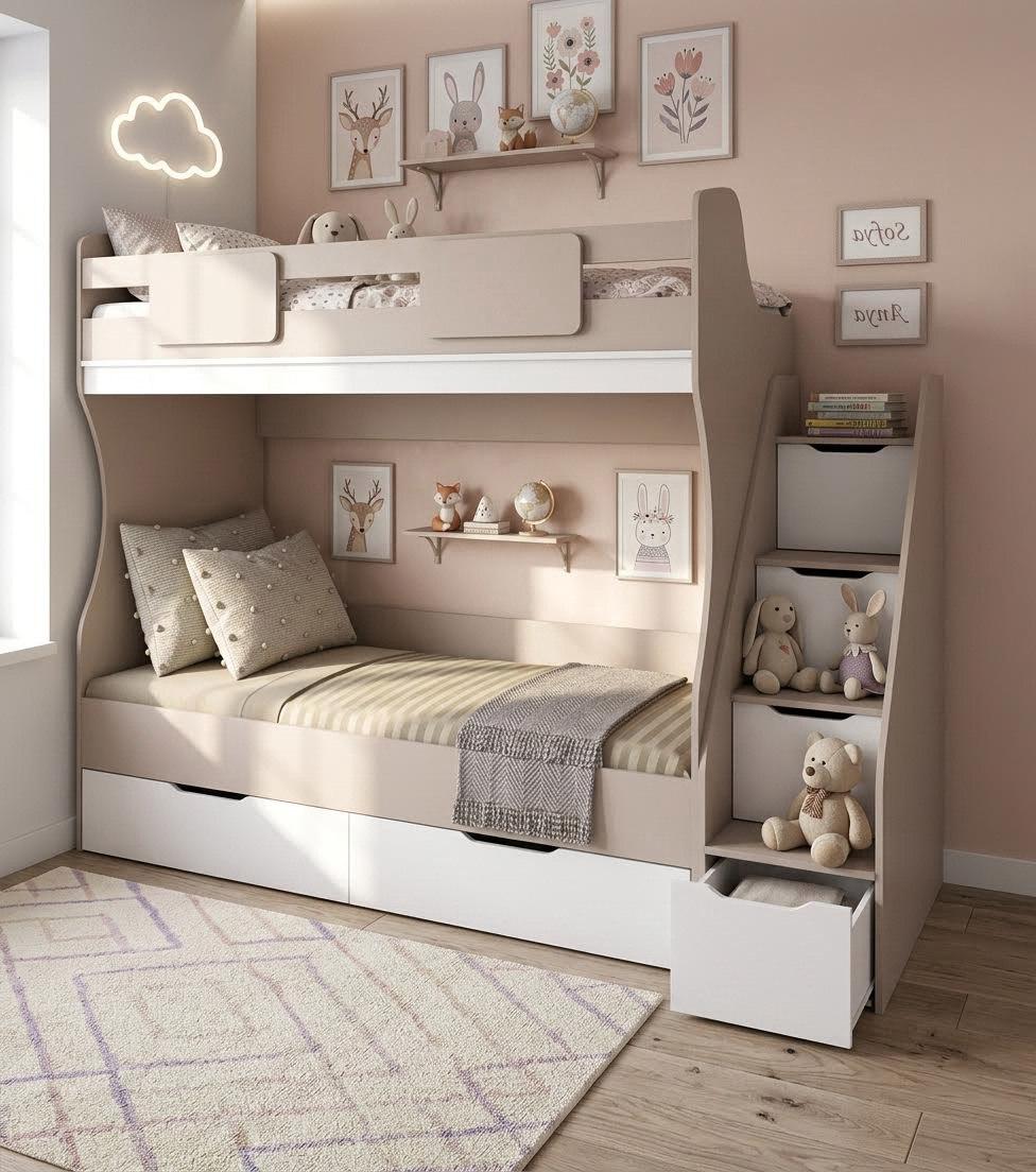 Двухъярусная кровать Миа - современное и стильное решение для оформления комнаты для двоих детей.