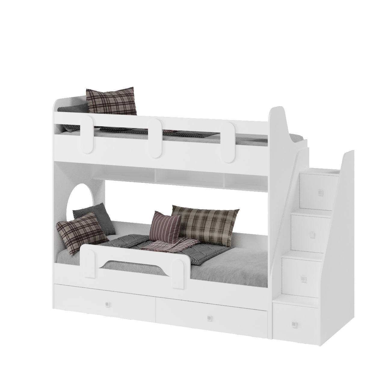 Выдвижные ящики в нижней кровати имеют глубину 450 мм, высоту 150 мм