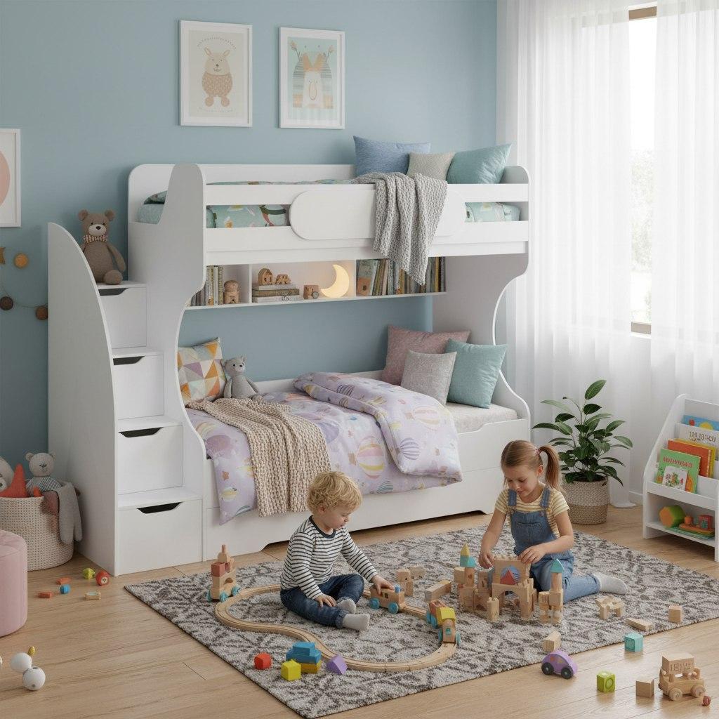 Высокая нагрузка на спальные места. Прочные ящики! Высокий, безопасный бортик |
