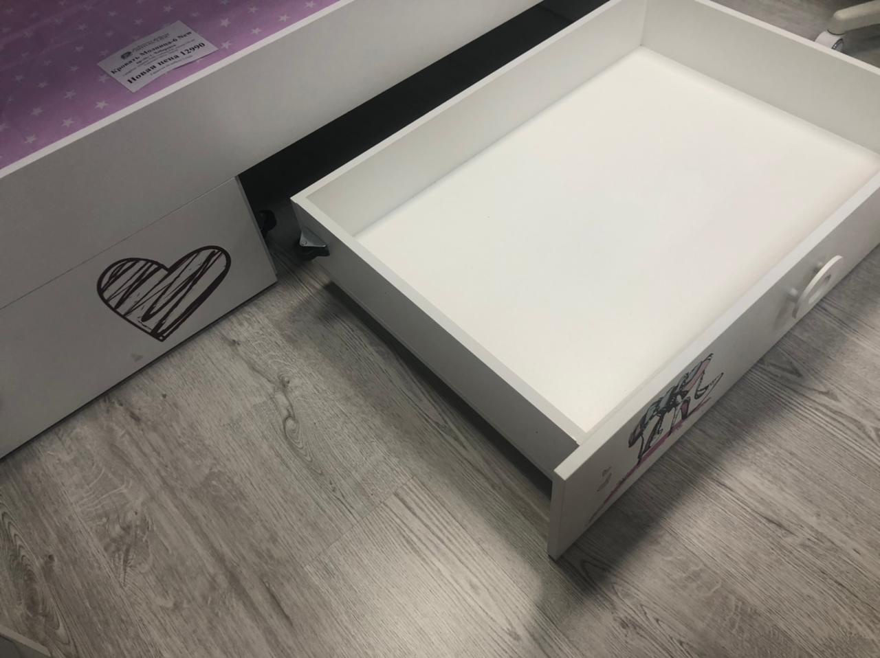 Нижняя кровать имеет два вместительных выдвижных ящика.