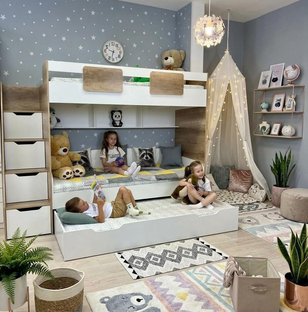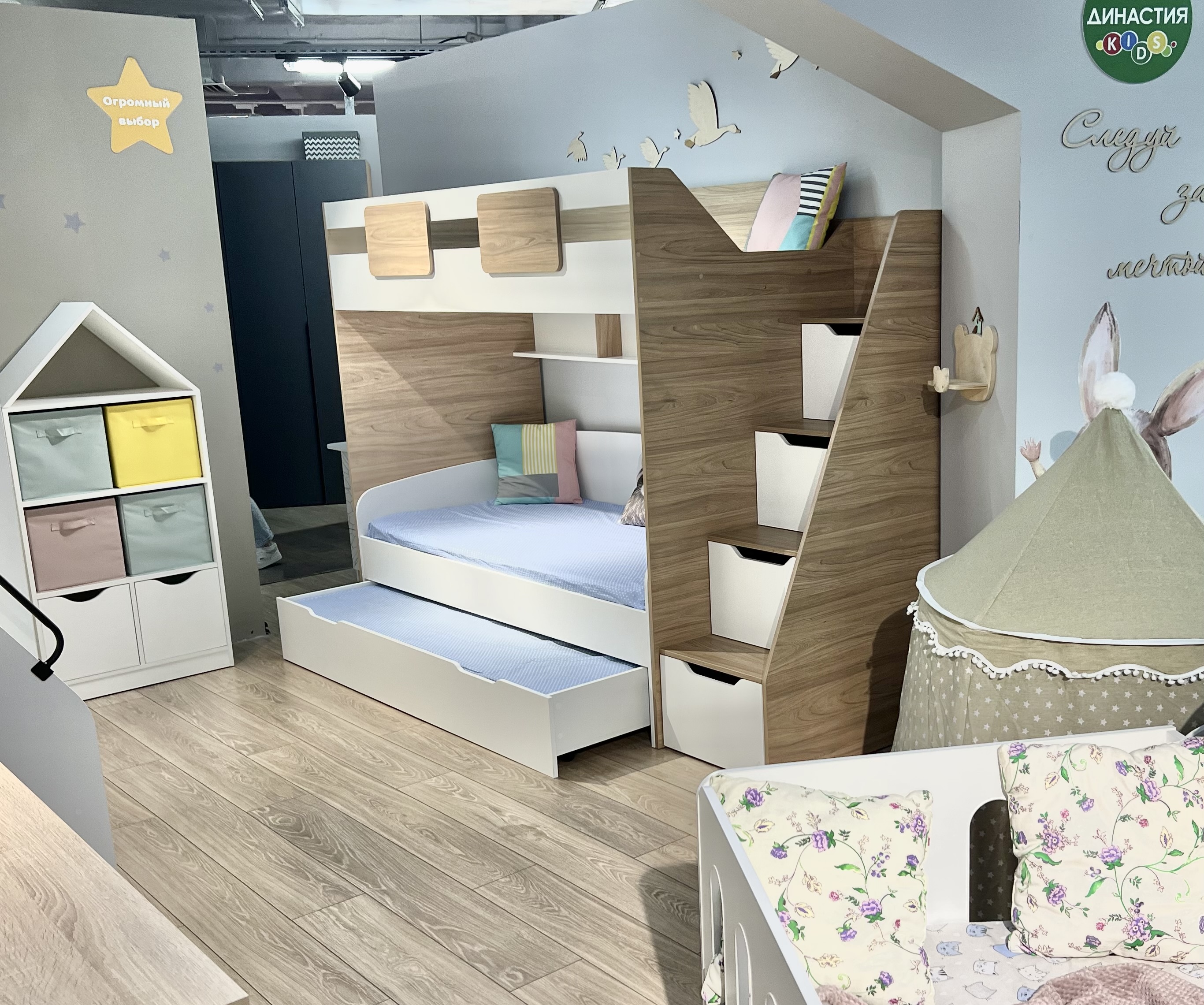Вместо них - цельный и прочный настил из ЛДСП, который выдерживает сверхвысокую нагрузку и позволяет расположиться даже взрослому с ребенком.