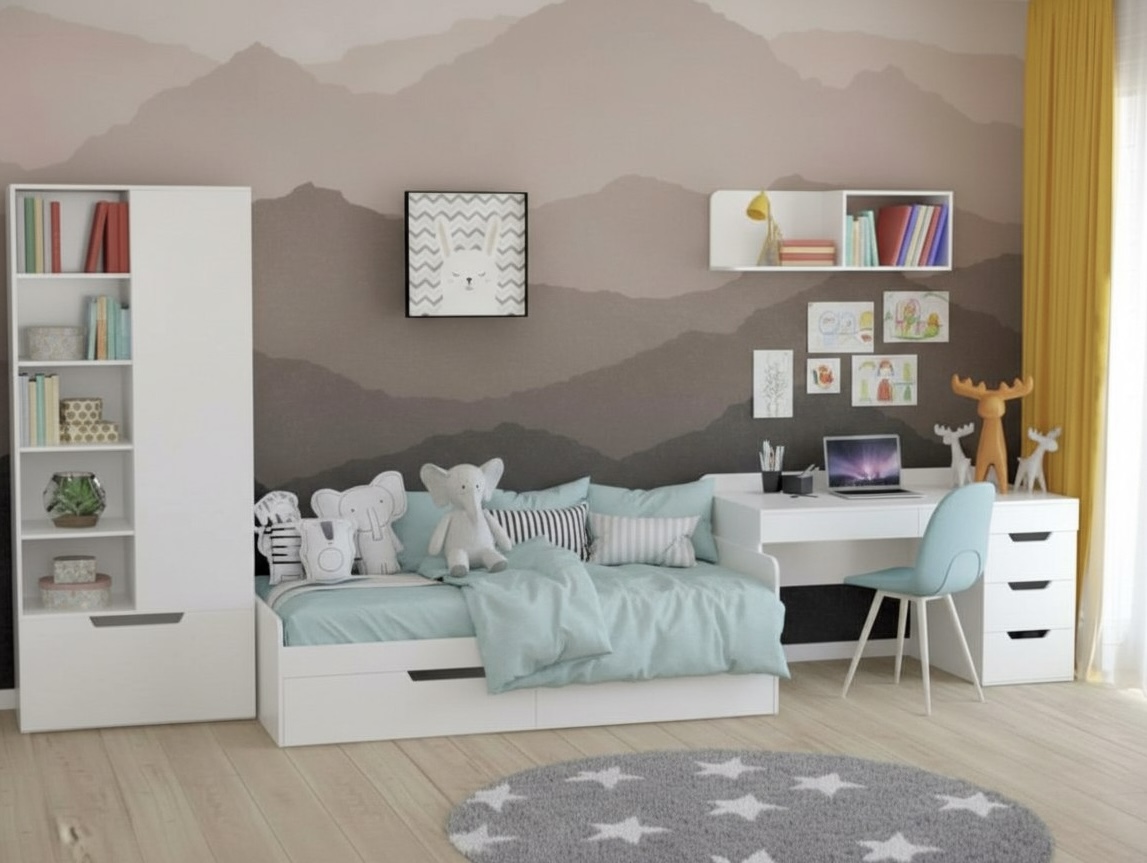Модульные комнатыДвухъярусные кроватиТрехъярусные кровати Односпальные кроватиКровати-чердакиМягкие кровати и диваныЧетырехъярусные кровати Шкафы, стеллажи, пеналыКомпьютерные и письменные столыНавесные-настенные полкиКомодыМатрасыМебель для родителей