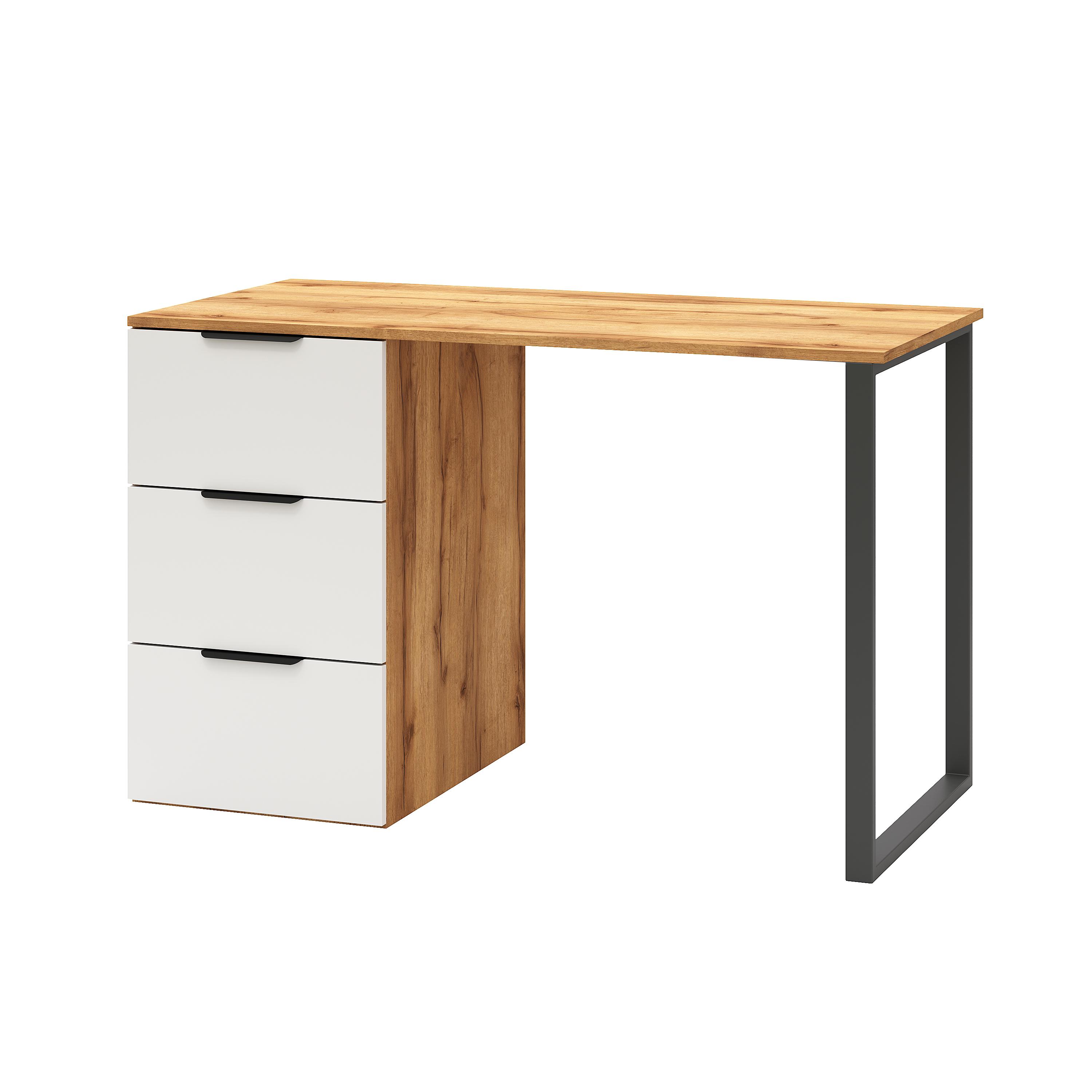 Натуральный декор дуб золотистый с выразительными полосами и следами от сучков прекрасно сочетается с однотонным белоснежным декором.