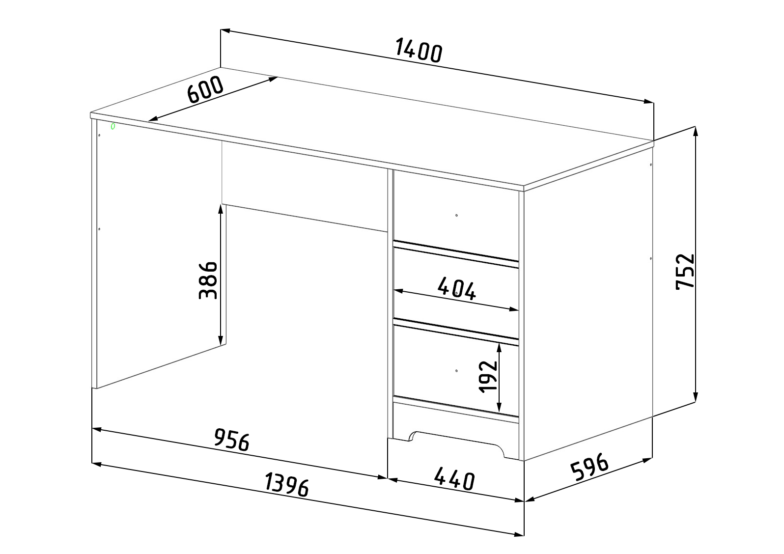 Габариты стола: ширина 1400, глубина 600, высота 752 мм