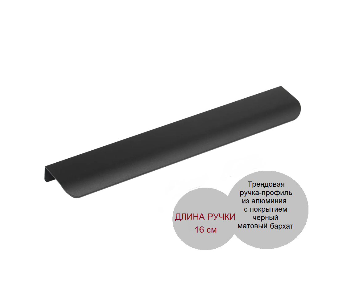Трендовые ручки-профиль из алюминия с отделкой черный матовый бархат.