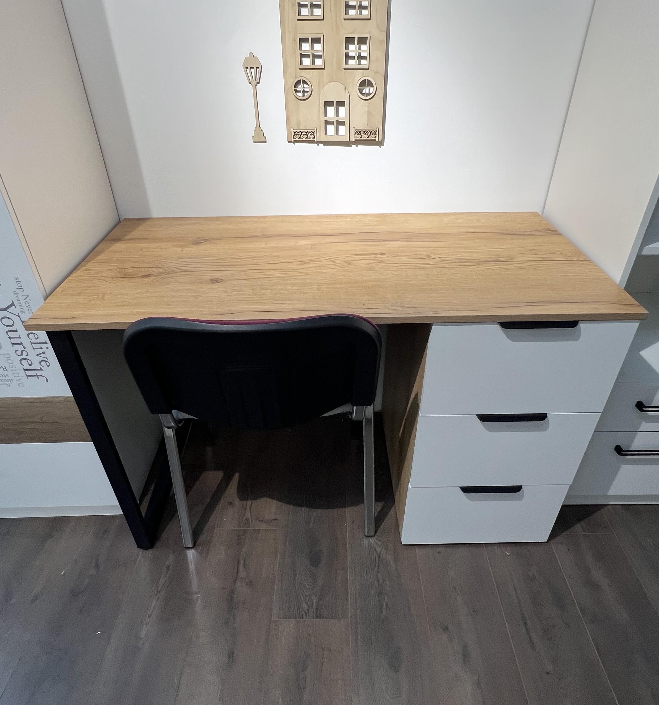 стол (2 шт) + стеллаж узкий + полка настенная (2 шт)