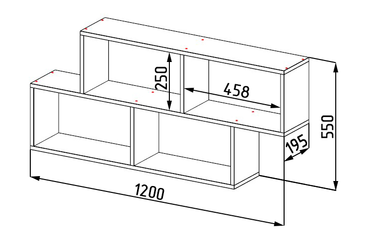 ширина 1200, глубина 190, высота 550 мм