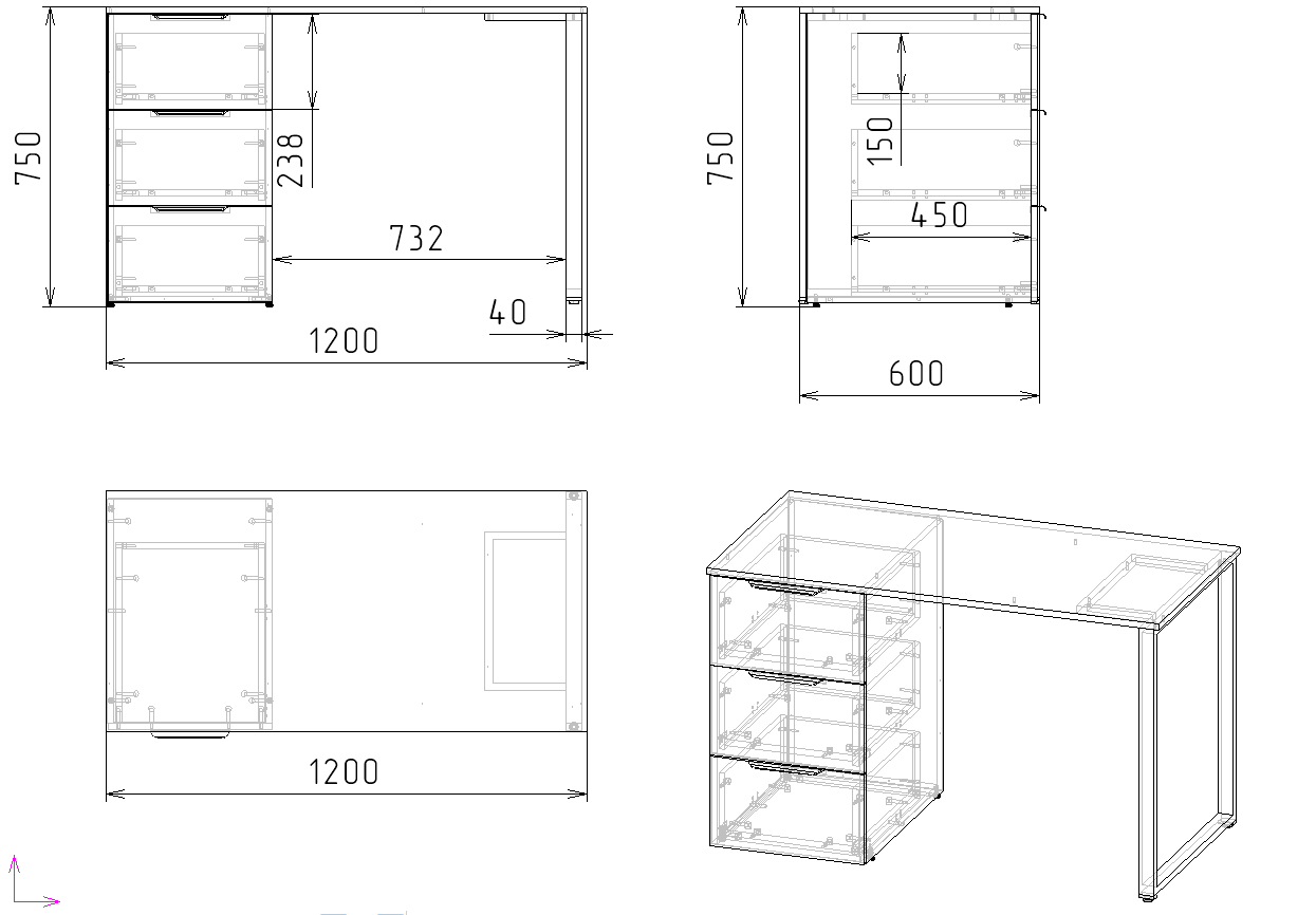 ширина 1200 х высота 750 х глубина 600 мм