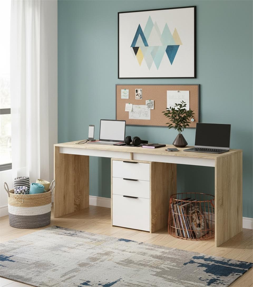 Стол для 2 детей Тандем 1800 мм (корпус дуб каньон + фасады белые) от Династия Kids