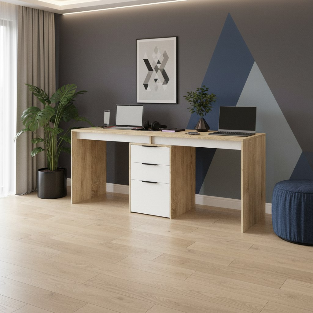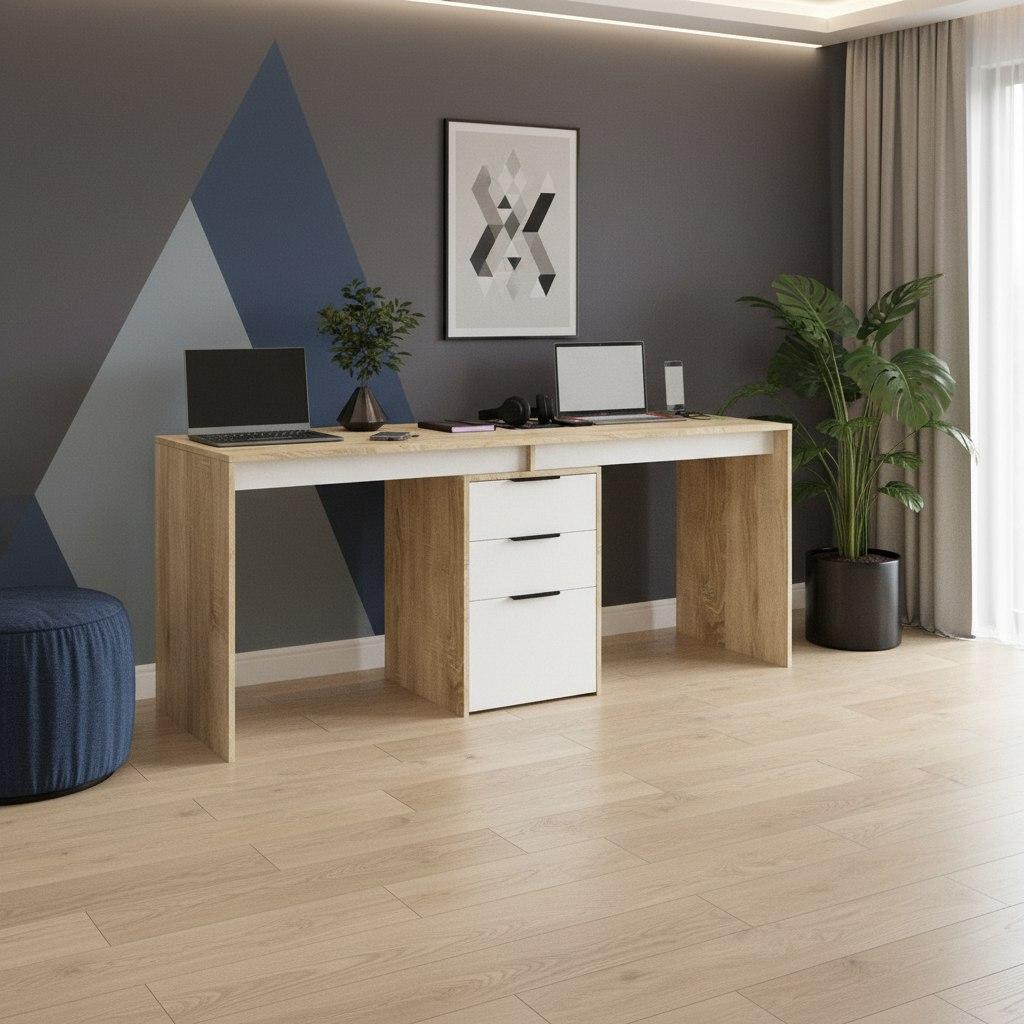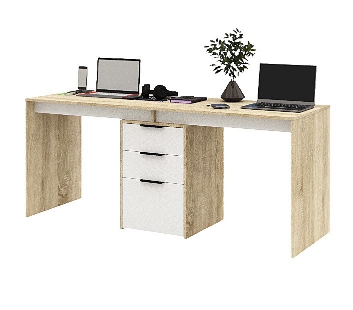 Стол для 2 детей Тандем 1800 мм (корпус дуб сонома + фасады белые) от Династия Kids
