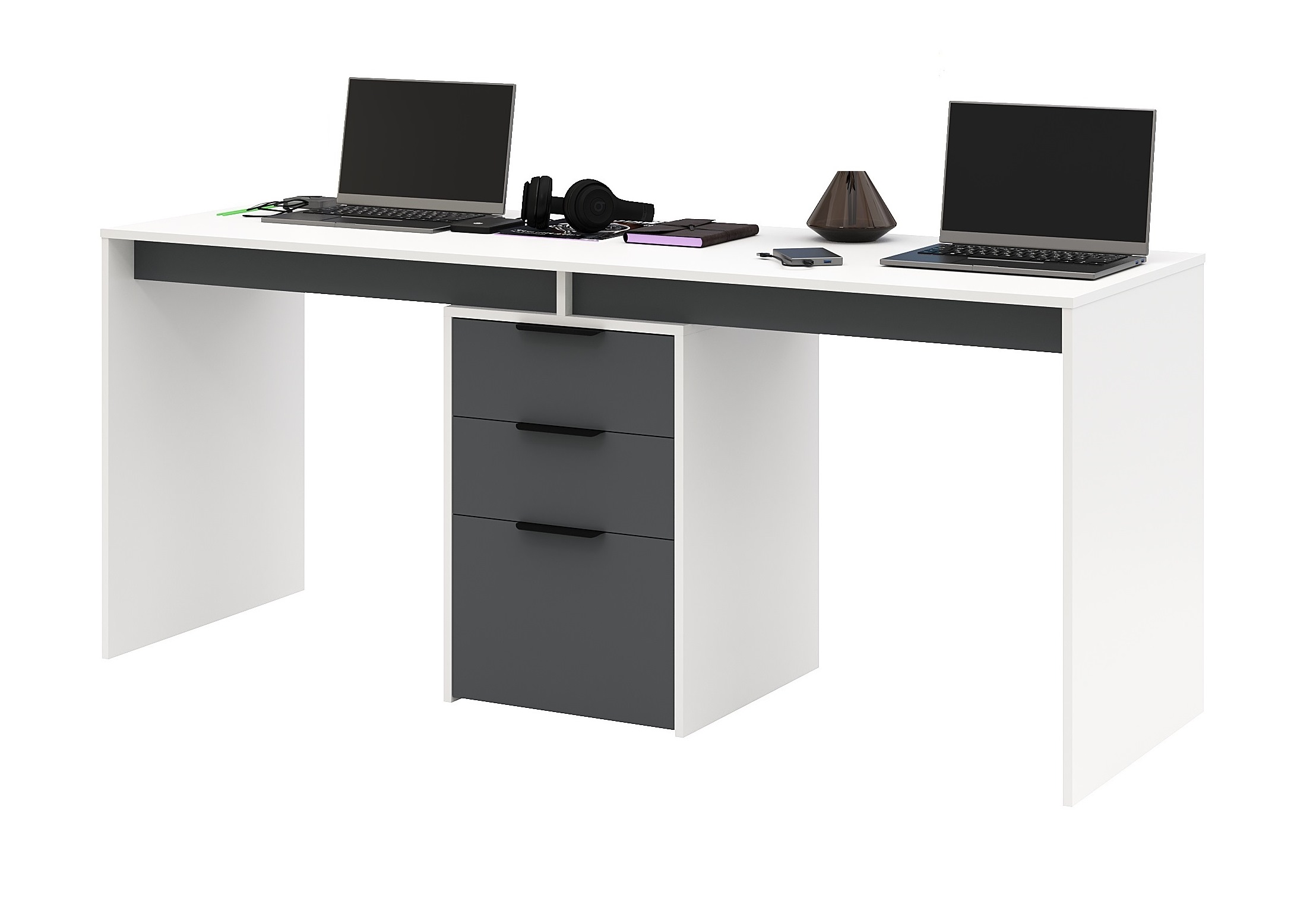 Стол письменный Тандем украсит современную детскую комнату и поможет организовать комфортный учебный процесс для двоих детей.
