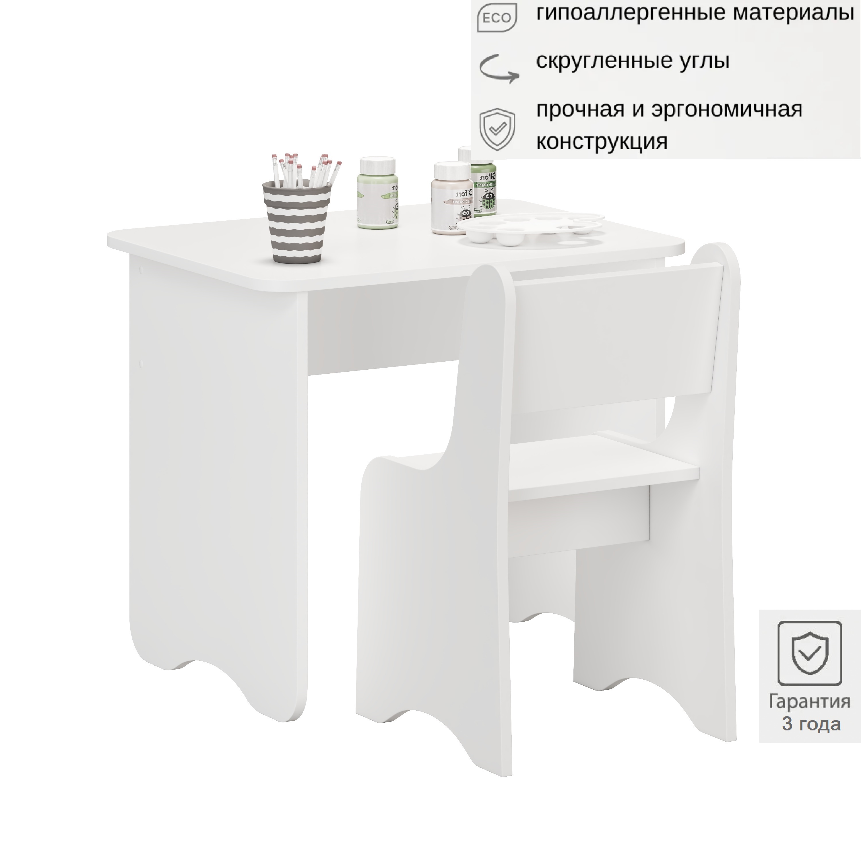 —Комплект Малыш (стол + стул) в белом цвете