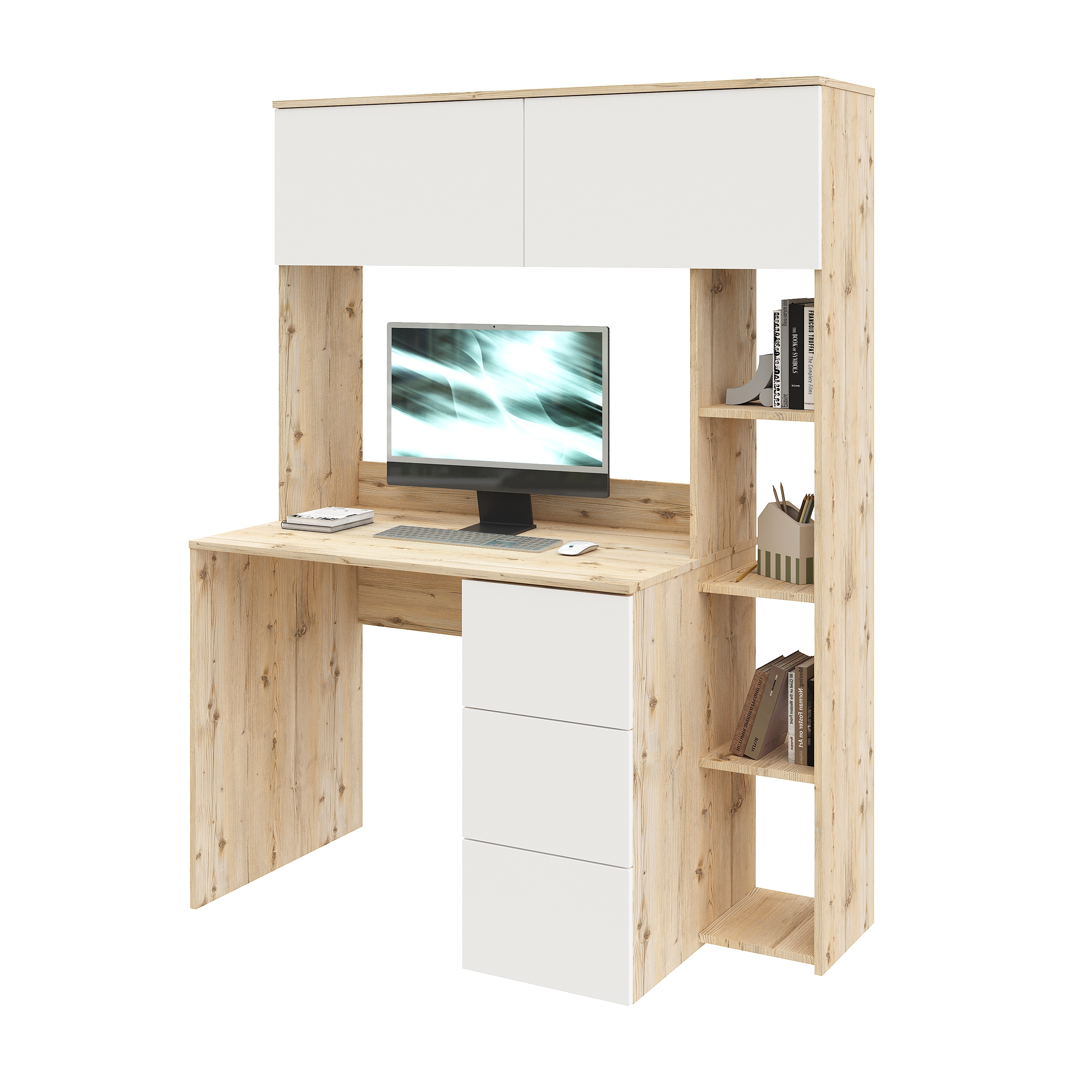 Просторная поверхность, удобные полки и ящики позволят разместить учебники, книги и канцелярию.