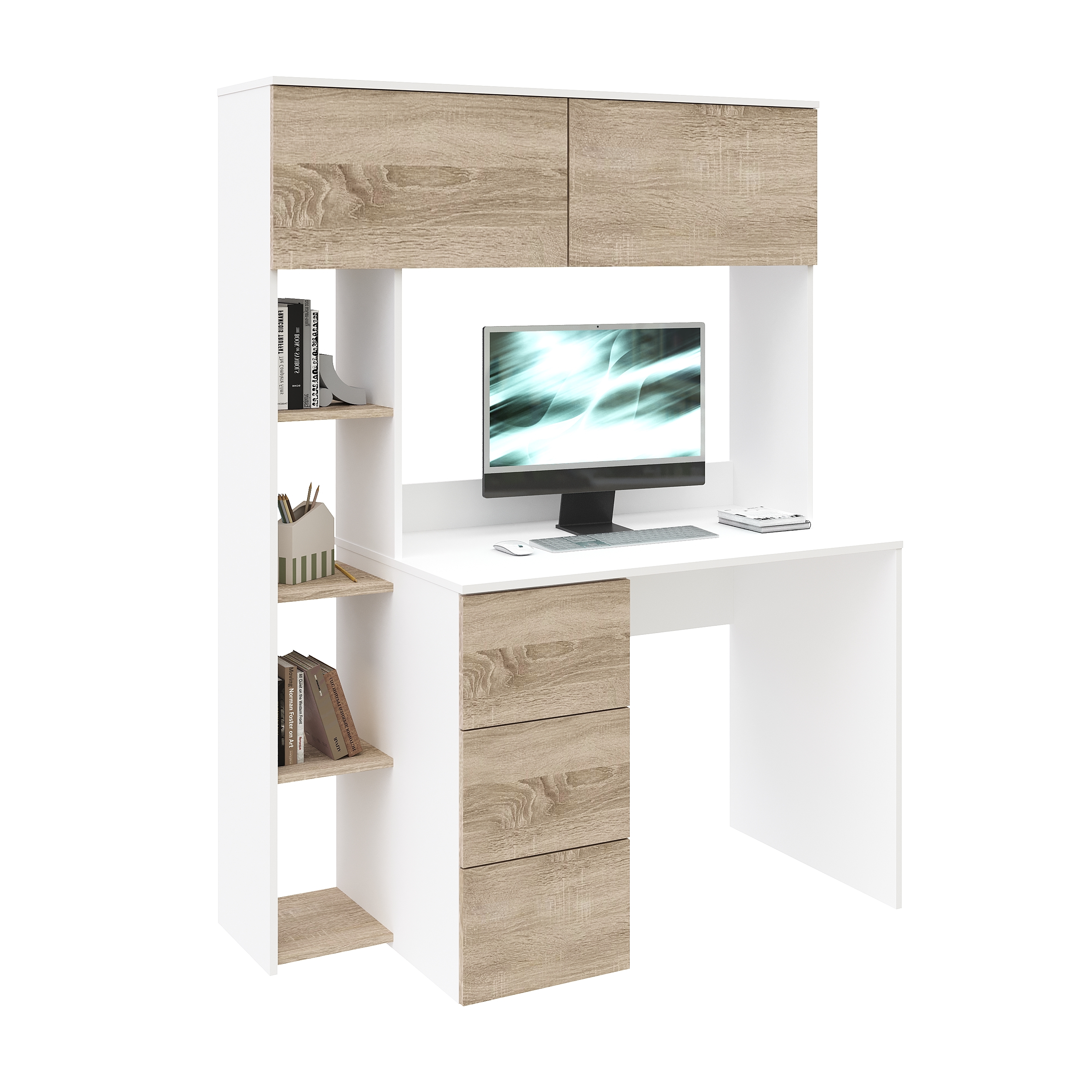 Просторная поверхность, удобные полки и ящики позволят разместить учебники, книги и канцелярию.