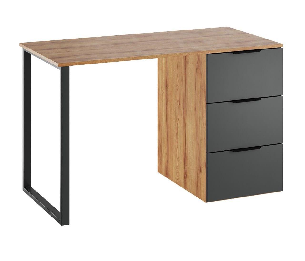 Натуральный декор дуб золотистый с выразительными полосами и следами от сучков прекрасно сочетается с однотонным декором графит.