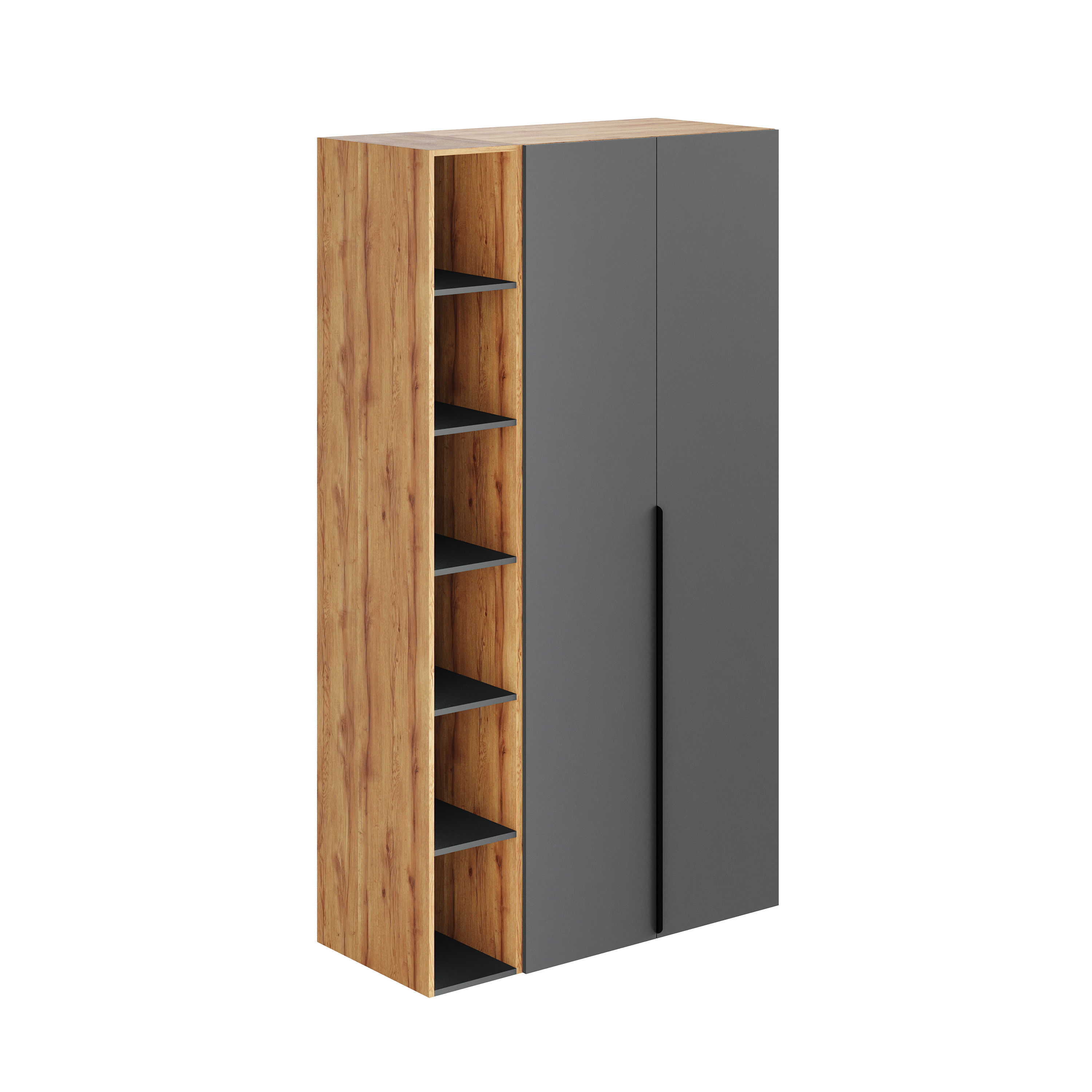 Двухстворчатый распашной шкаф + стеллаж открытый коллекции Брайт Графит