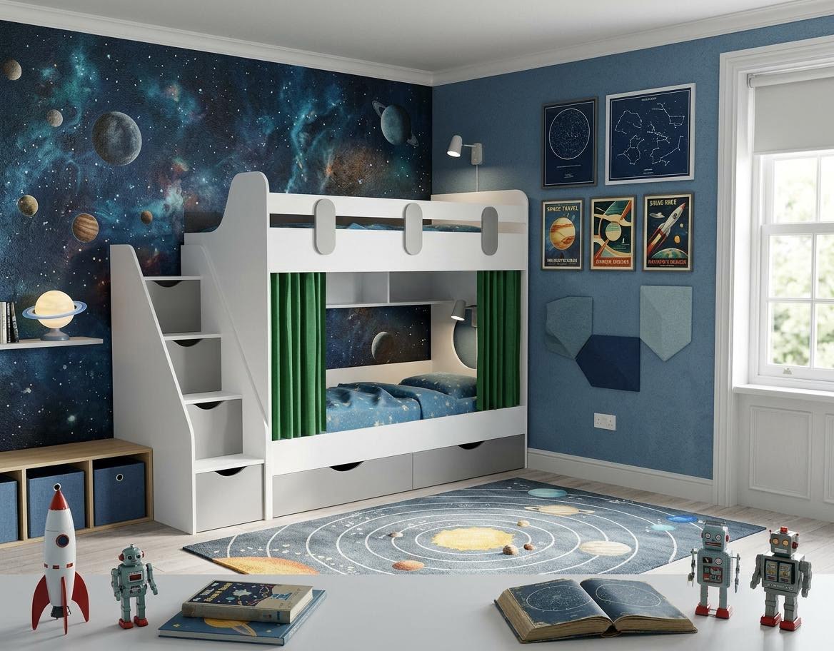 Выдвижные ящики в нижней кровати изготовлены с применением метабоксов, что делает изделие практичным и надежным.