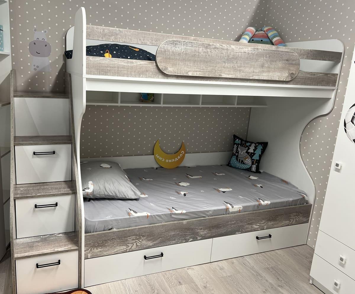 Прочная конструкция кровати выдерживает нагрузку до 150 кг на каждое спальное место.