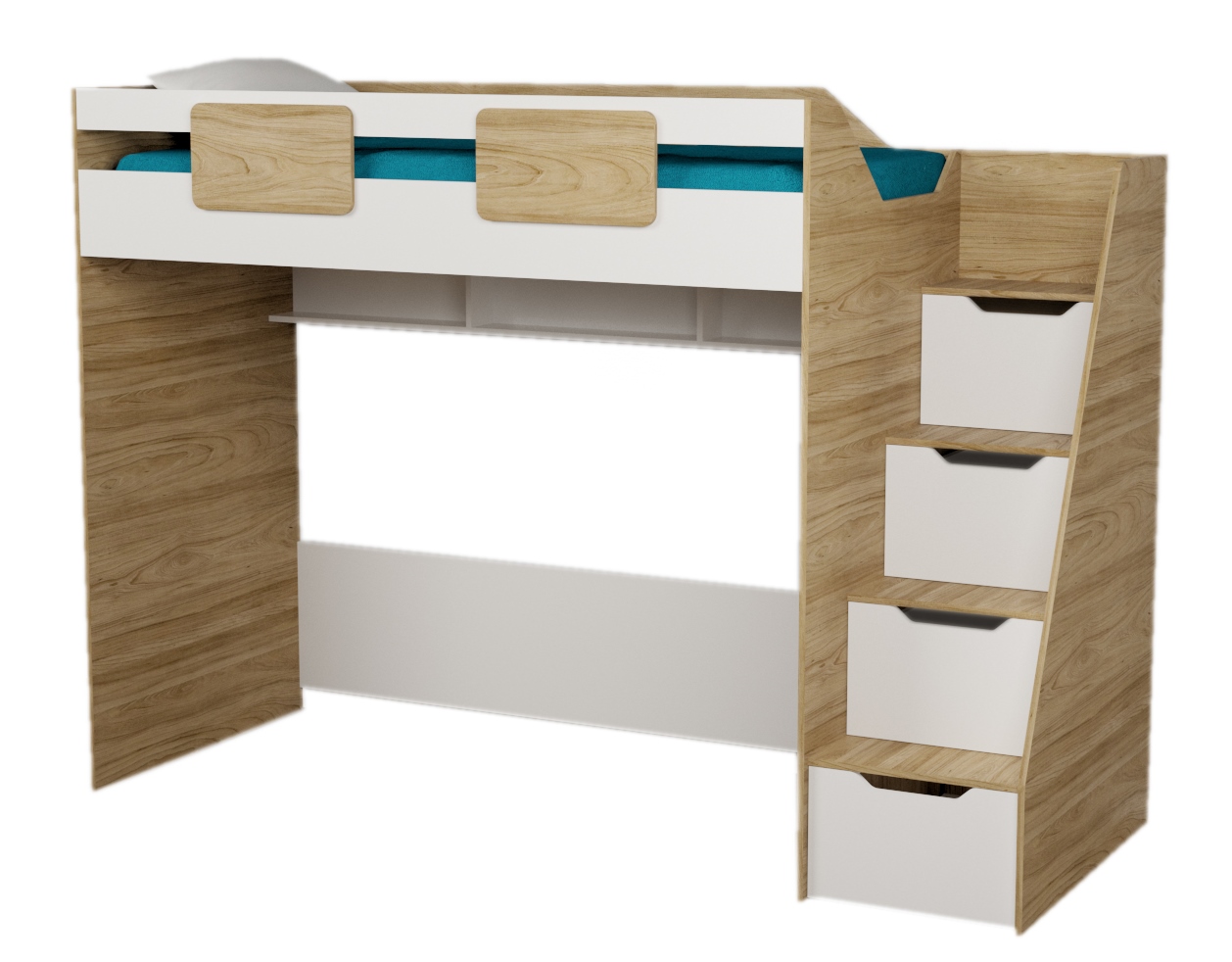 кровать односпальная + кровать-чердак + стол + тумба для стола + полка навесная + шкаф-стеллаж