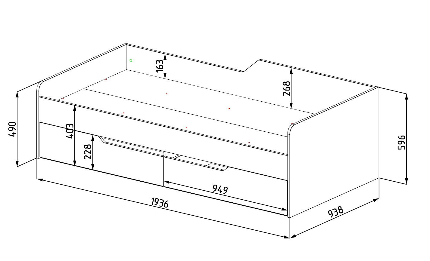 В кровать встроены два выдвижных ящика на шариковых направляющих полного выдвижения.