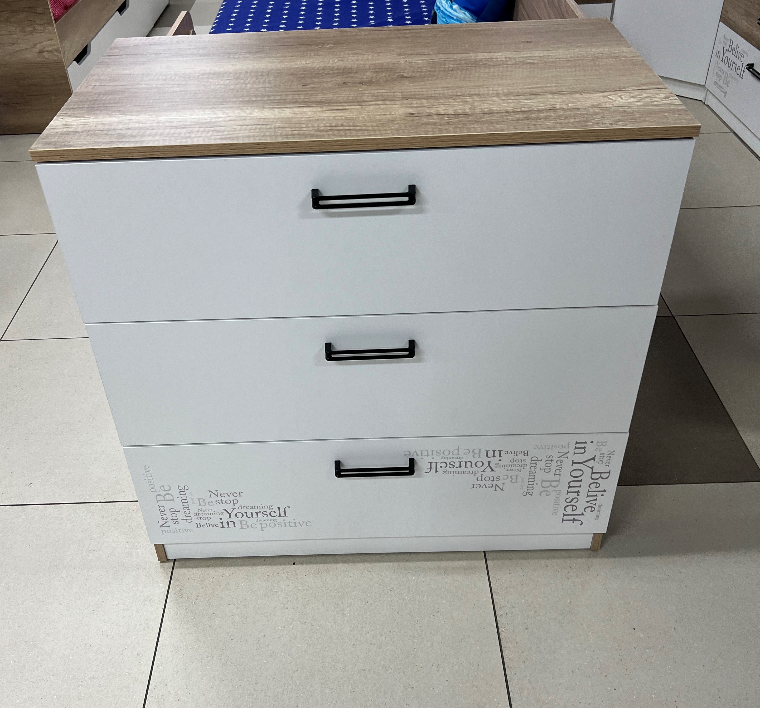 Мебель "Твой Стиль" выполнена из качественного, экологически чистого ЛДСП класса Е0,5 в сочетании цветов "дуб каньон + белый" и оформлена дизайнерским принтом.