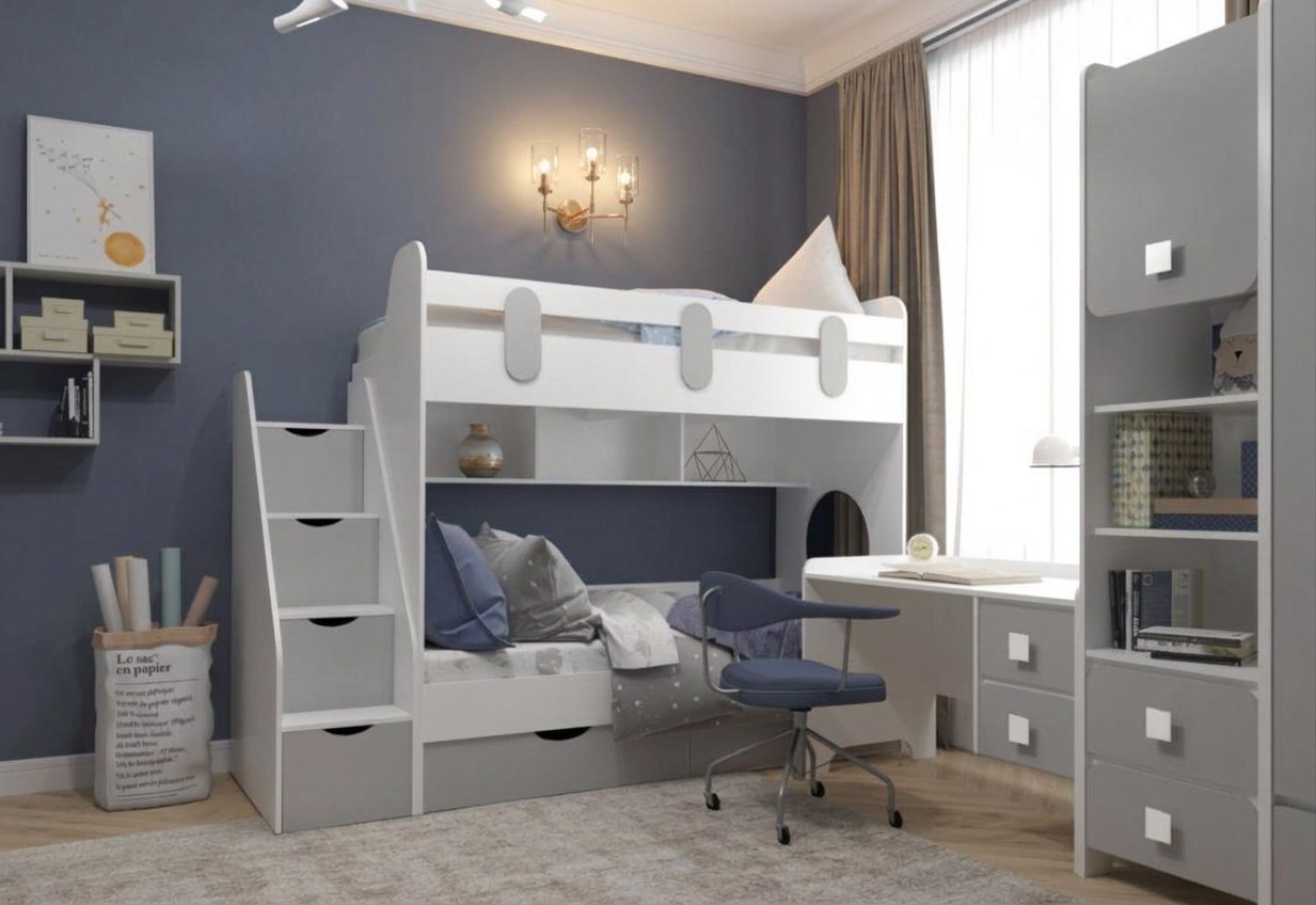Материал: сертифицированное, качественное, экологически чистое ЛДСП класса Е0,5 в цветах серебро + белый