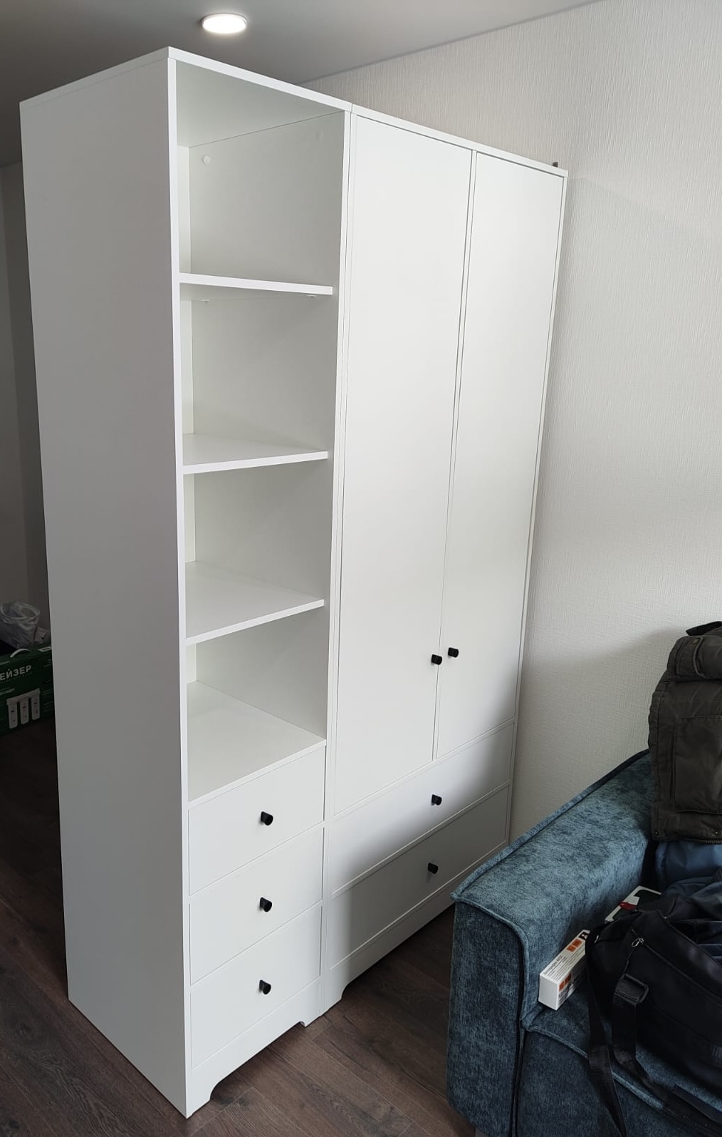 <virtues>Качество радует глаз</virtues> <comment>Купили этот классный шкаф, только ручки свои поставили). Отлично вписался</comment>