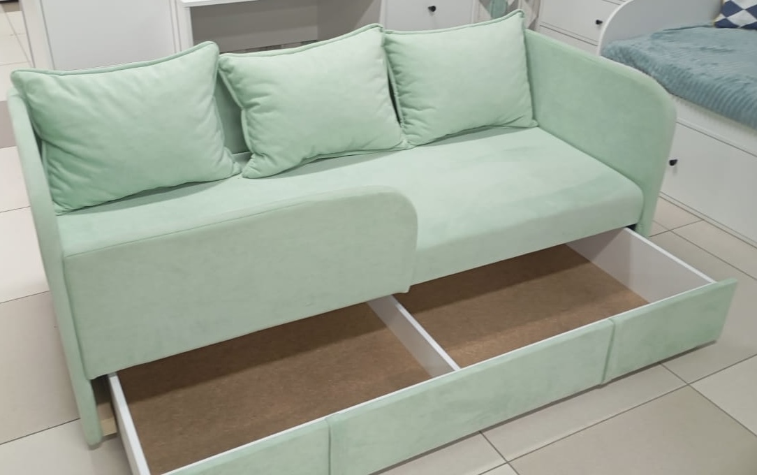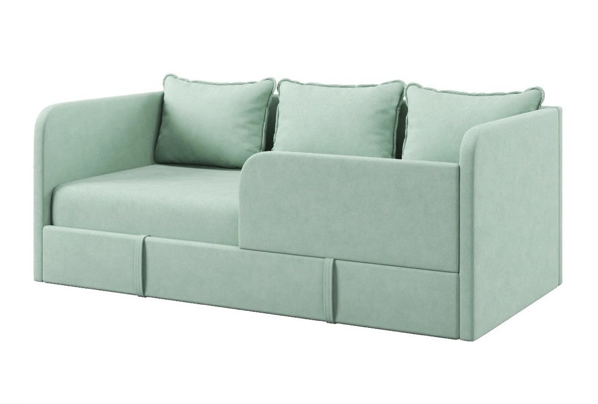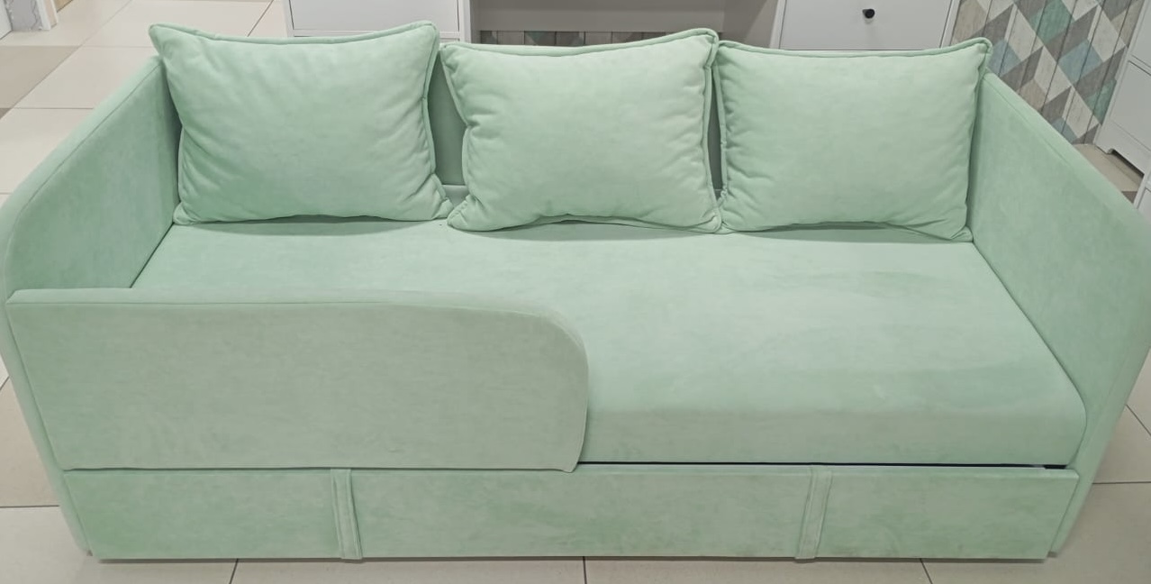 Диванчик подойдет для самых маленьких деток, так как имеет защитный бортик.