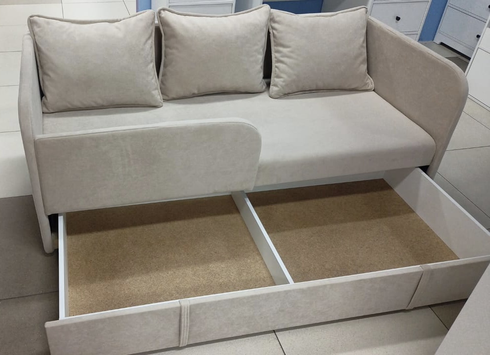 В стоимость дивана входят: матрас, подушки (3 штуки), защитный бортик, выдвижной ящик.