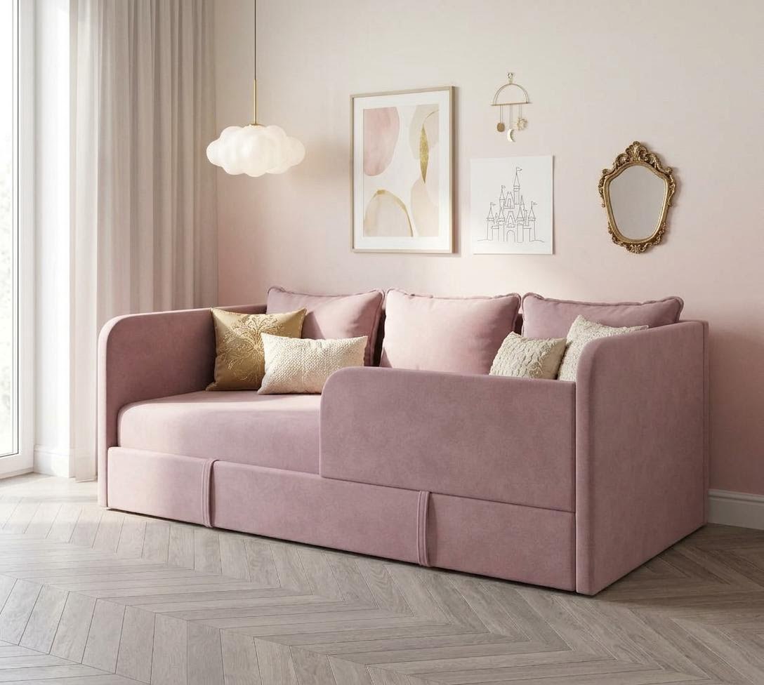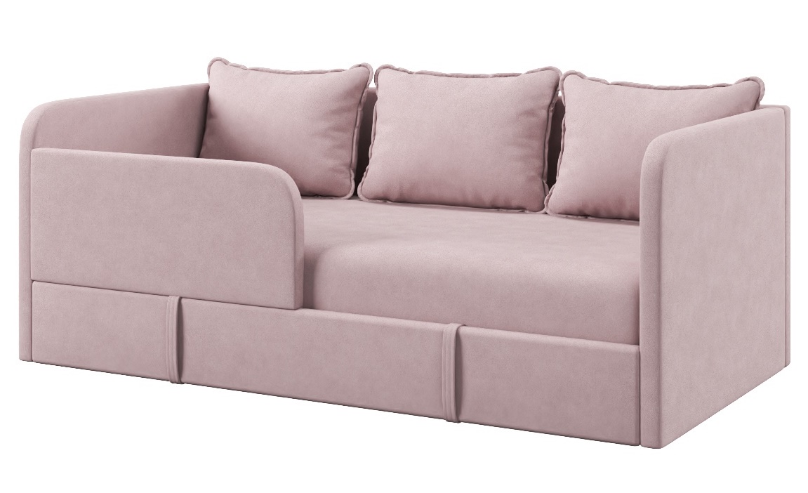 Диванчик подойдет для самых маленьких деток, так как имеет защитный бортик.