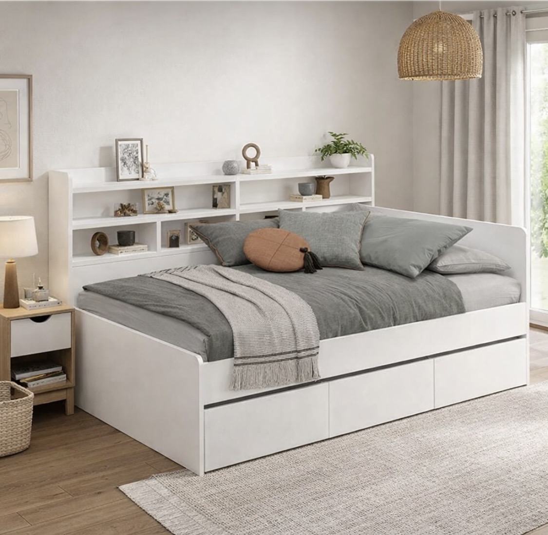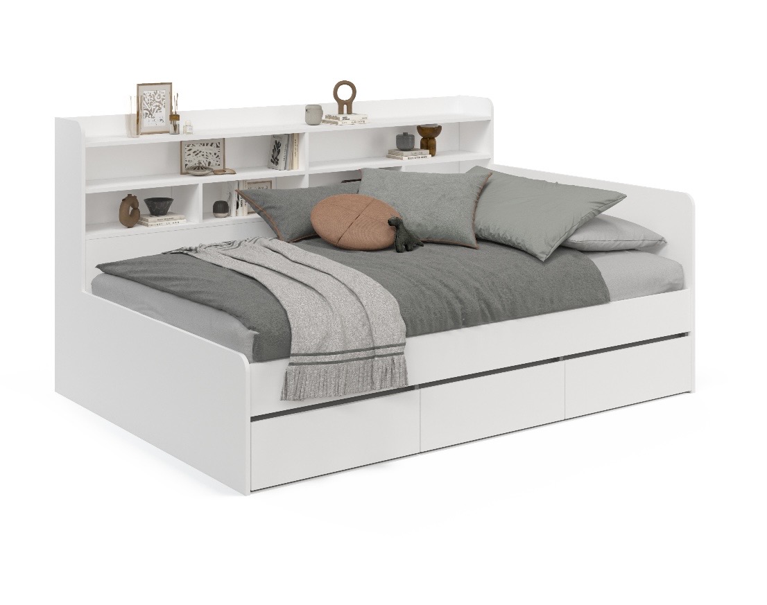 Высокая нагрузка на спальное место. Удобные полочки и ящики |
