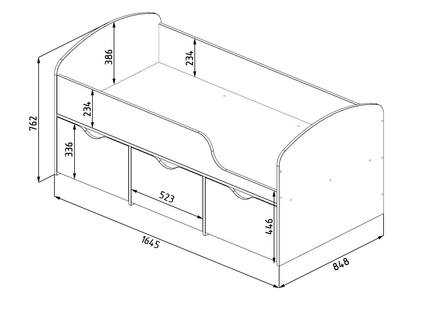 * Габариты: ширина 1645 х глубина 845 х высота 762 мм