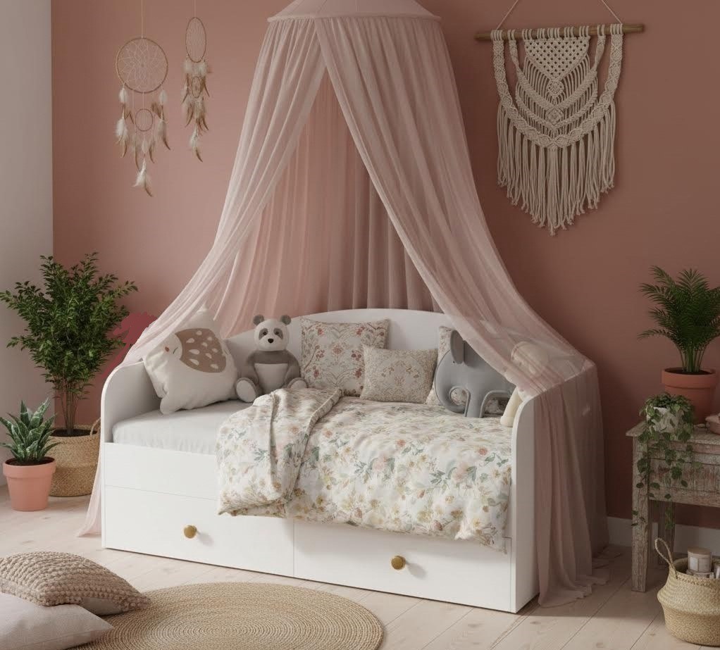 - Возраст ребёнка. Для маленьких девочек лучше подойдут кровати с защитными бортиками, которые предотвратят падения. Если вы ищете кровать для девочки подростка, обратите внимание на модели большего размера с лаконичным дизайном.