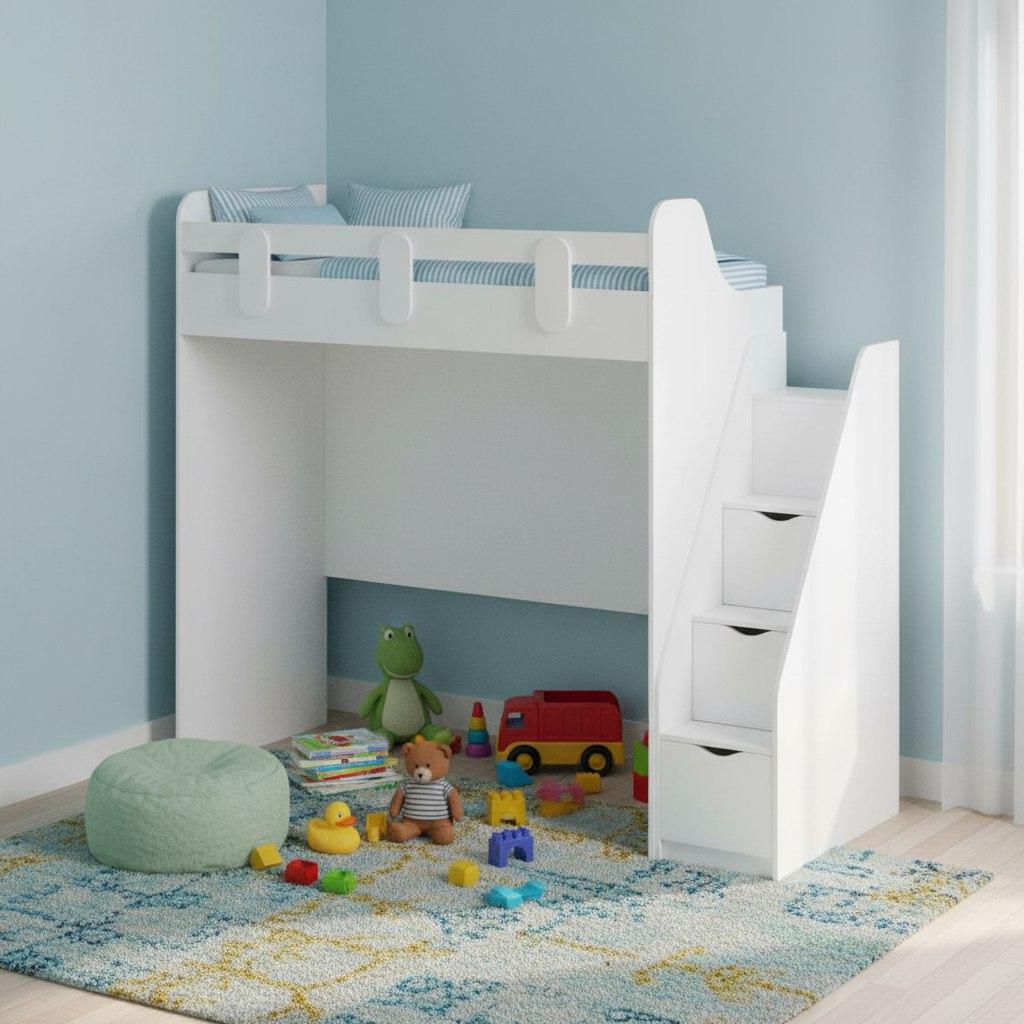В лестницу встроены выдвижные ящики для игрушек - удобно и практично.