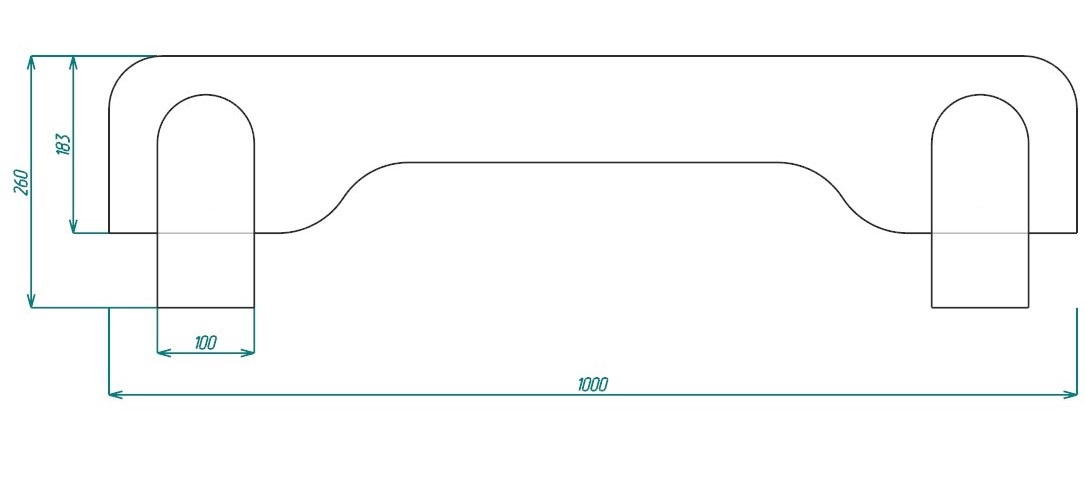 Длина 1000 мм, общая высота 260 мм