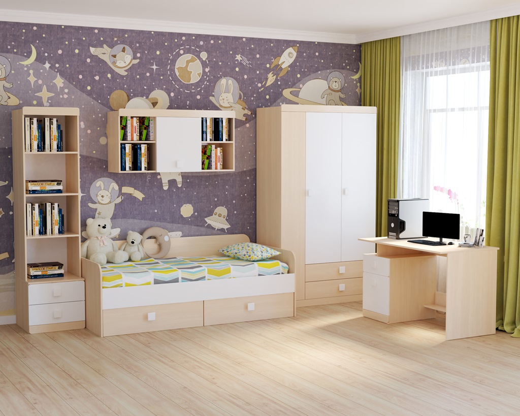 Мебель выполнена из сертифицированного, качественного, экологически чистого российского ЛДСП в сочетании цветов дуб млечный + белый
