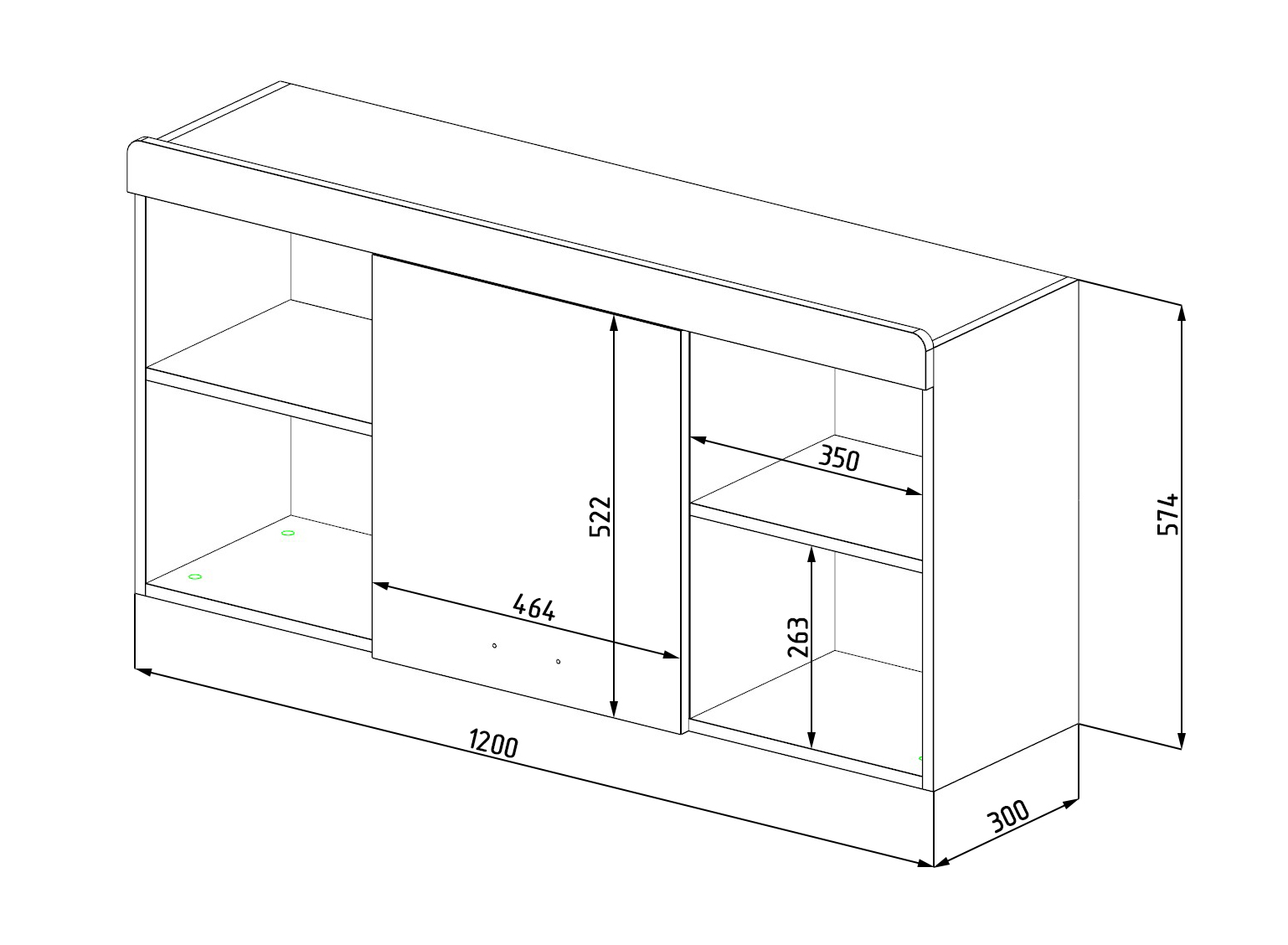Габариты полки: ширина 1210 х глубина 316 х высота 563 мм