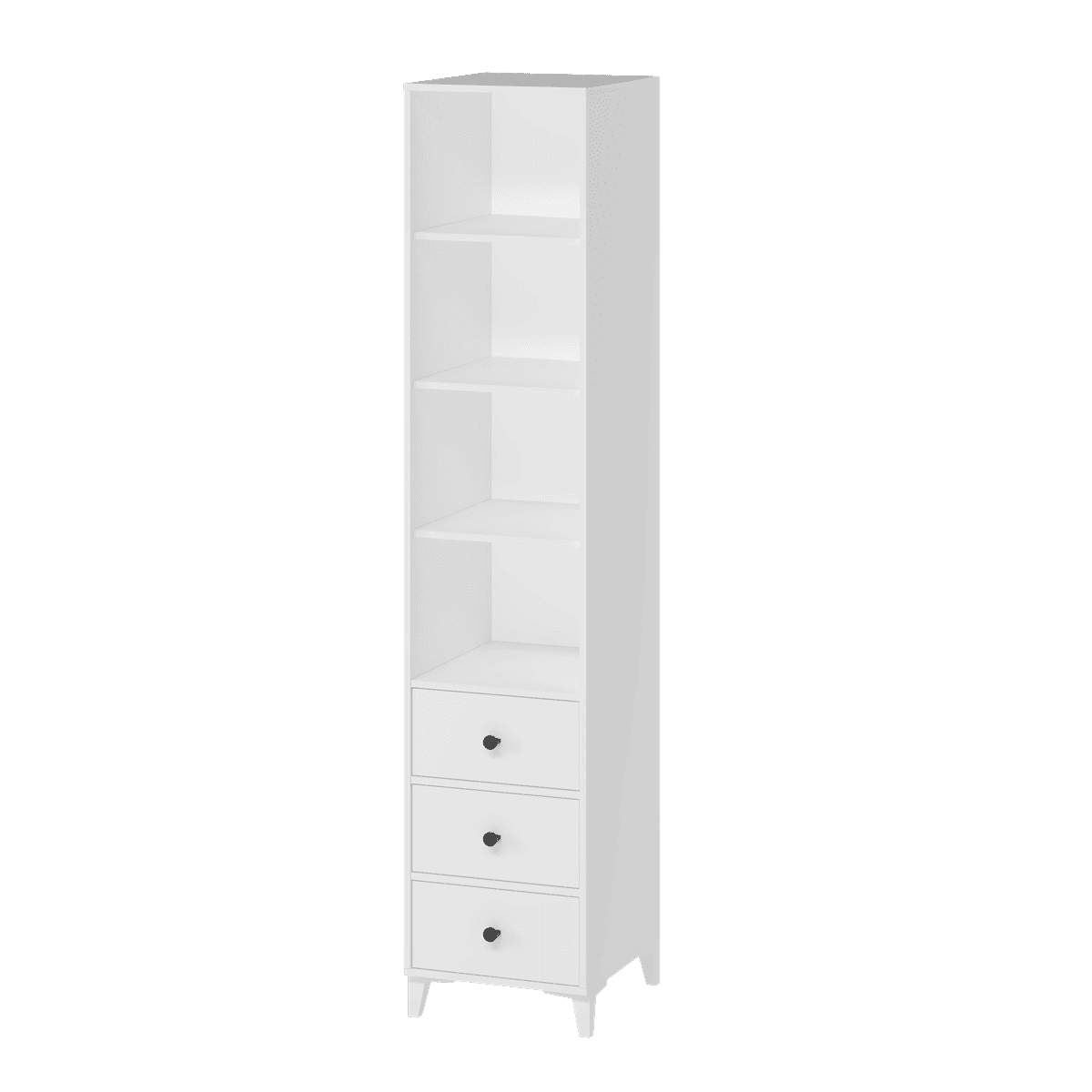 В пенал встроены три выдвижных ящика на направляющих скрытого монтажа с доводчиками.