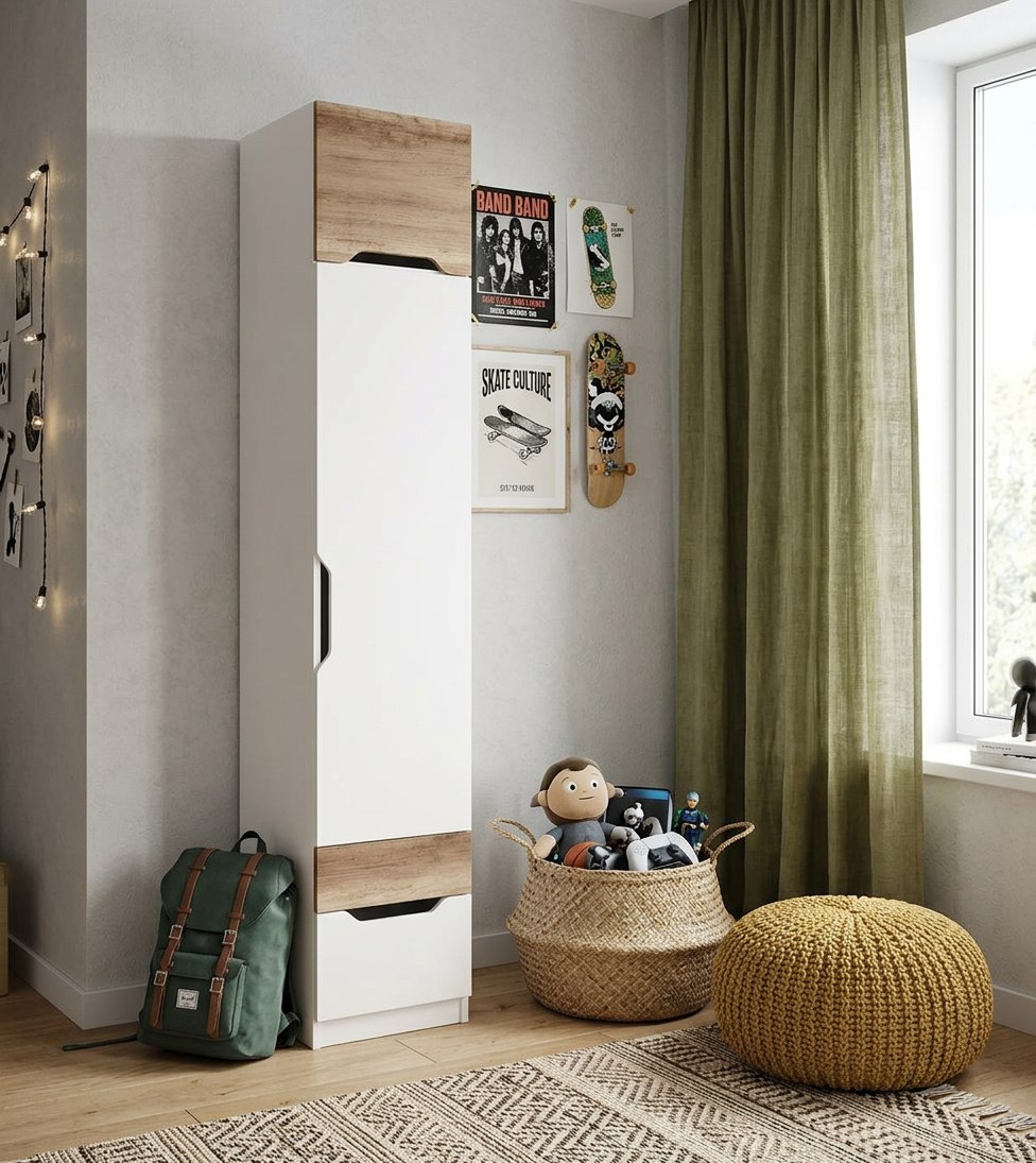Мебель выполнена из сертифицированного, качественного, экологически чистого ЛДСП Е0,5 в сочетании цветов дуб каньон + белый.