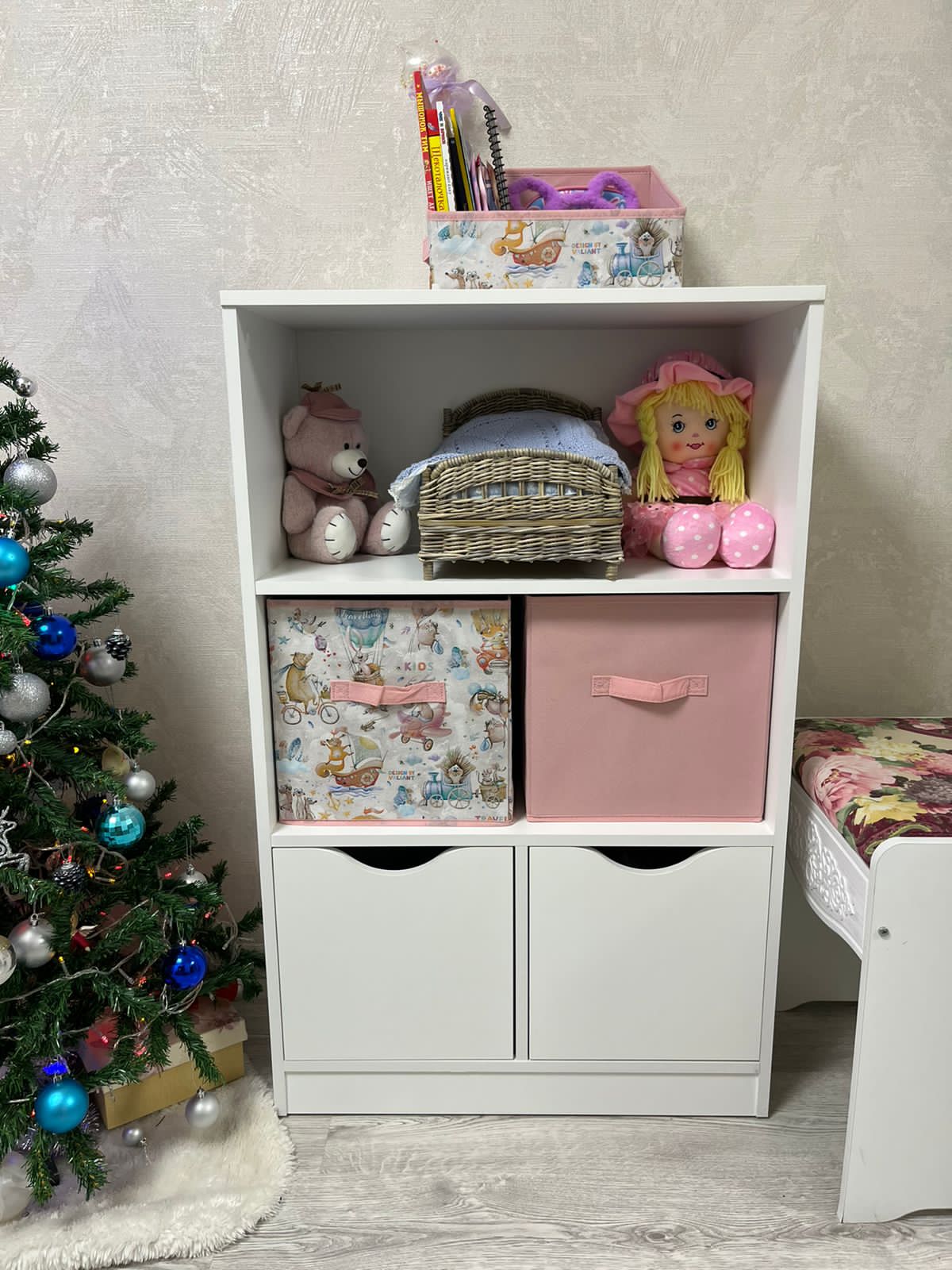 Ребенок с удовольствием разместит в таком стеллаже свои любимые игрушки и книги.