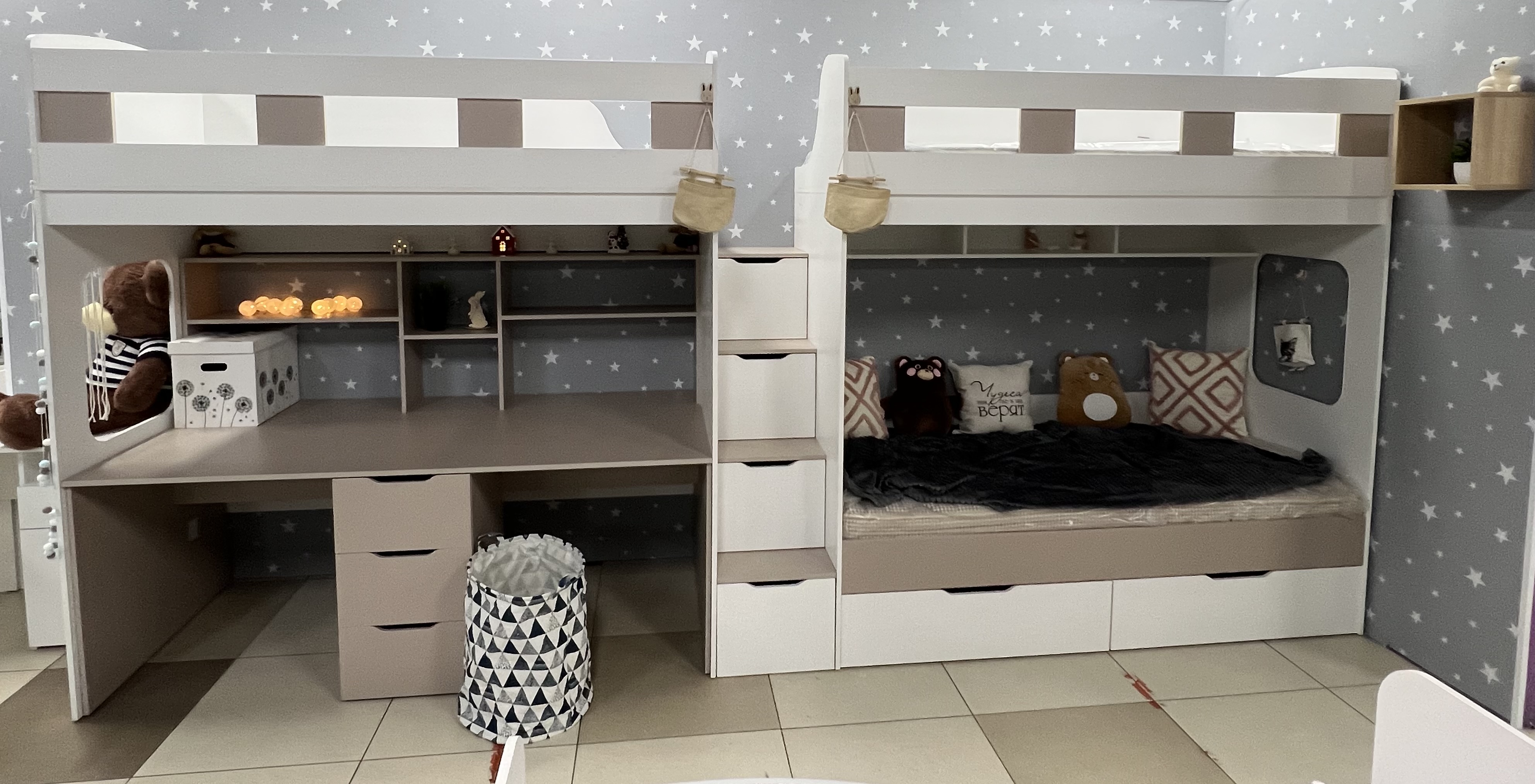 - Максимальная экономия пространства: модель освобождает место для игр и учебы, сохраняя при этом уют и комфорт.